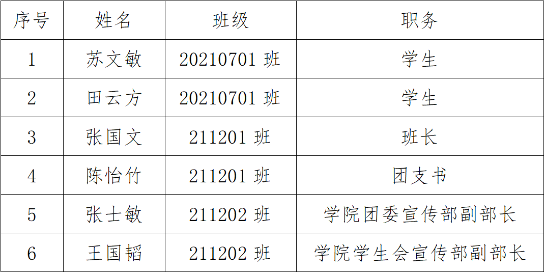 为了认真贯彻党的发展党员工作方针,充分发扬民主,增加发展党员工作的透明度,把好发展党员质量关,确保新党员质量,现将预备期满拟转正的中共预备党员在全院范围内公示。公示时间为5个工作日(2024614日至2024620)。在公示期内,党内外群众如对拟转正的中共预备党员有意见,请以真实单位、姓名,用书面、电话等形式如实反映情况。群众反映的问题可受到法律保护,我们将严格保密。受理党内外群众意见的本学院党委办公室电话号码是:0431--85176956;学校党委组织部办公室电话号码是:0431--85716215。