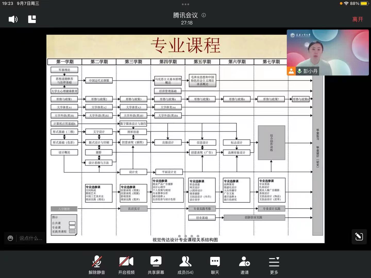 学院网讯(通讯员 于丰硕)9月7日19时,视觉传达设计系专业介绍会暨班导师见面会通过腾讯会议顺利召开,系主任彭晓丹、班导师魏妍妍和张烨烨参会,会议由彭晓丹主持。