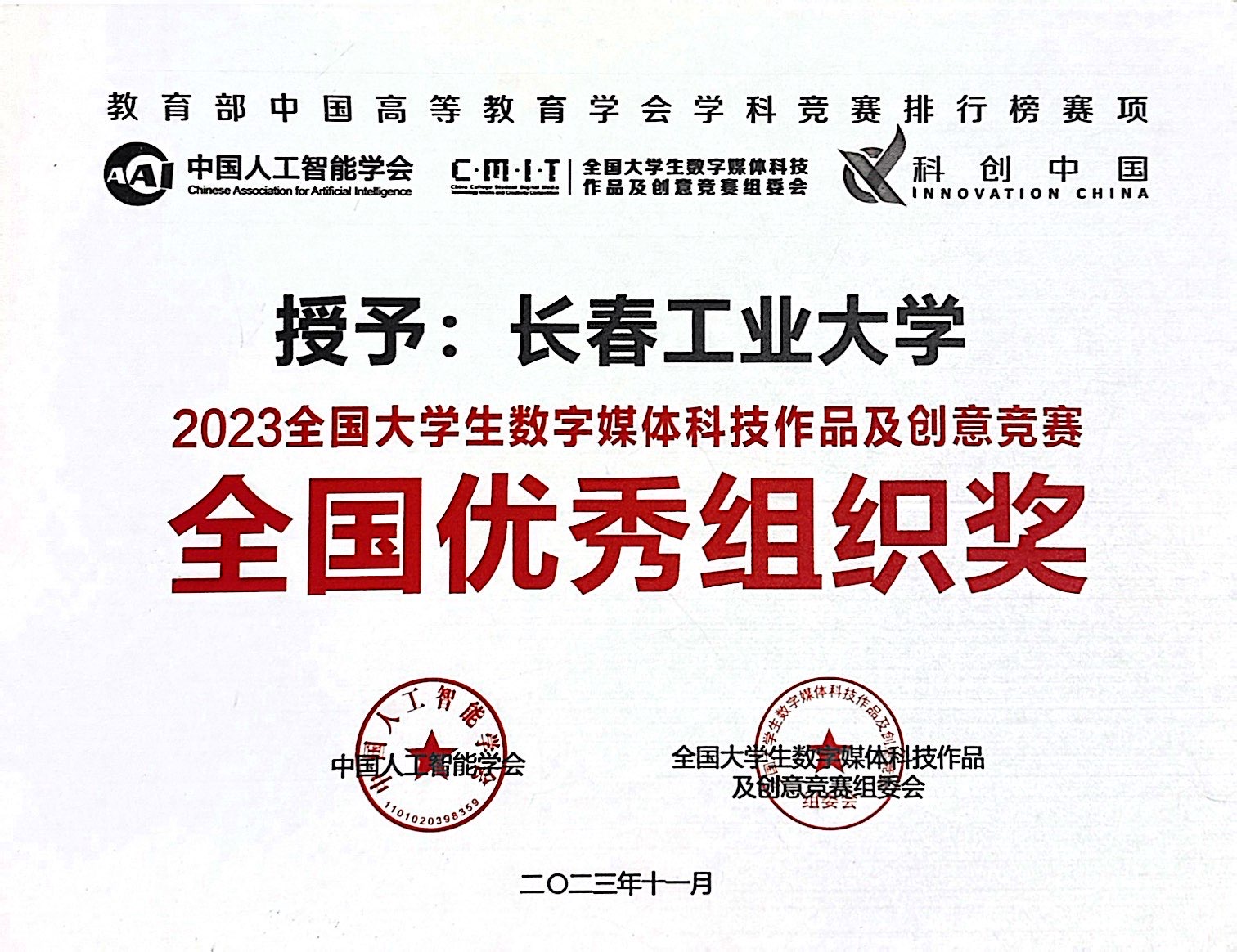 全国大学生数字媒体科技作品及创意竞赛由中国人工智能学会和竞赛组委会主办,中国人工智能学会科普工作委员会、中国人工智能学会女科技工作者委员会、中国计算机学会虚拟现实与可视化专业委员会协办,2023年列入教育部中国高等教育学会大学生学科竞赛排行榜单的赛事项目。
