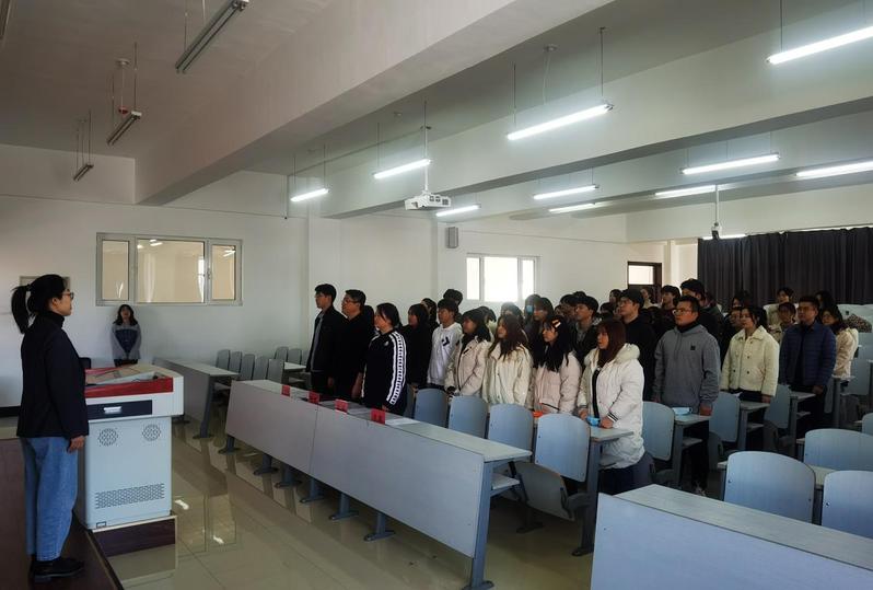 12月16日中午,yl6776永利集团第十期分党校开班仪式在艺术楼333阶梯教室举行。会议由学生党支部书记毕爽主持。出席开班仪式的领导和老师有学院党委书记杨峰、党委副书记刘坤、2019级辅导员于丰硕,第十期分党校49名学员参加开班仪式。