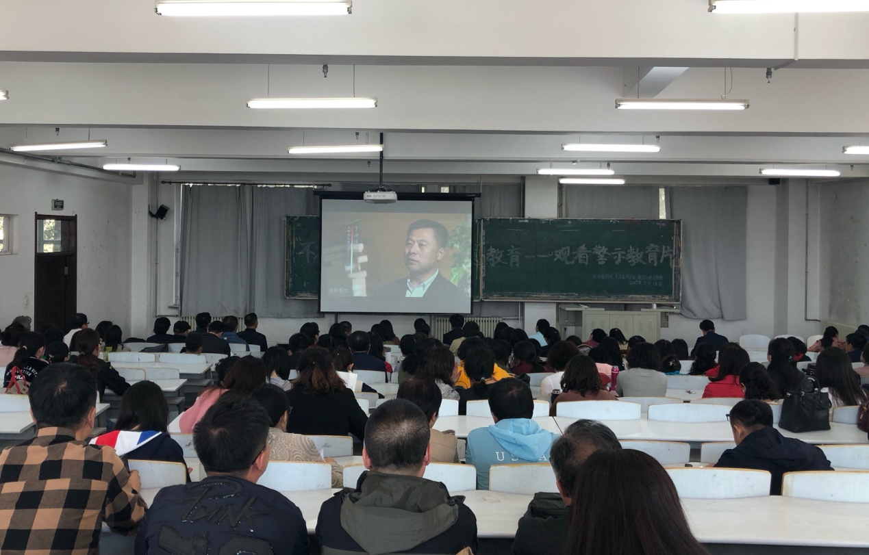 为深入开展“不忘初心、牢记使命”主题教育活动,进一步筑牢广大教职工拒腐防变思想道德防线,9月19日下午,yl6776永利集团、外国语学院、数学与统计学院共同组织全体教职工集中学习警示教育纪录片《不忘初心 警钟长鸣》。
