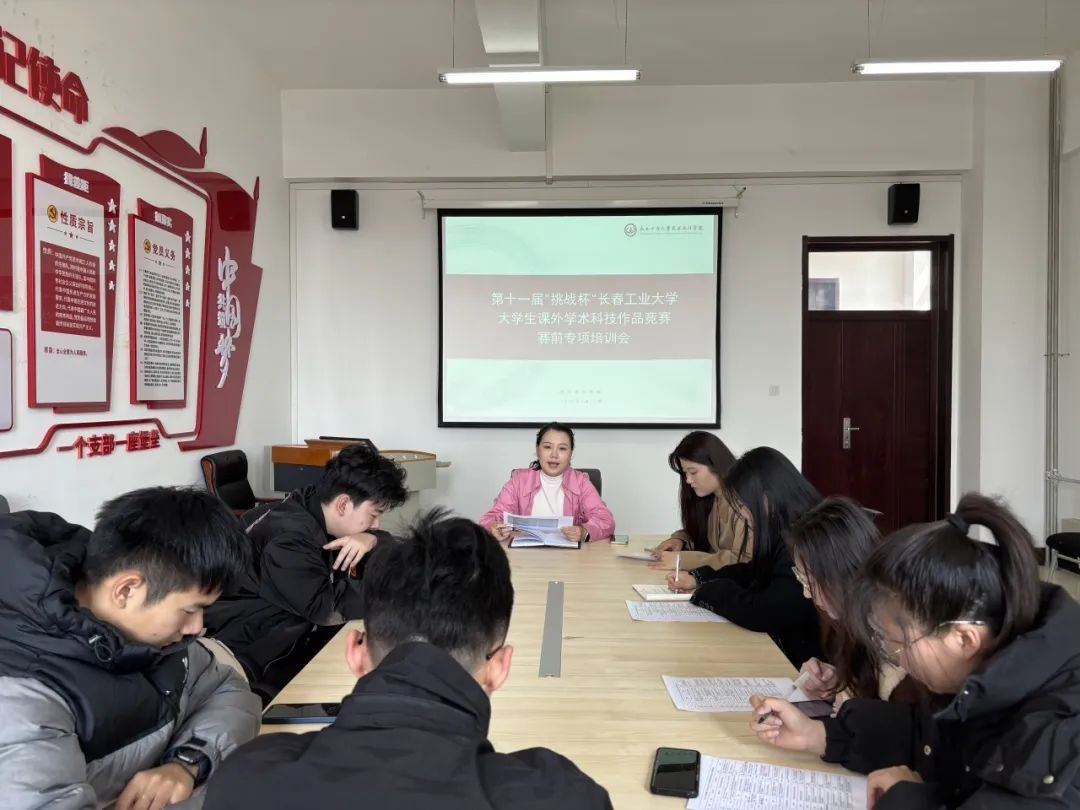 会上,侯天放系统解读竞赛规则、赛程安排及申报书撰写规范等要点,着重强调作品需突出创新性、科学性与社会价值的融合,建议团队优化展示方案,强化成果支撑,并结合往届案例分享备赛策略。