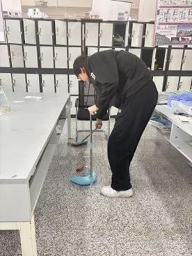 艺术楼的清洁行动更显细致入微。同学们逐层清理教室的每个角落,用刮刀清除走廊墙面胶痕,让展示栏恢复整洁面貌。当夕阳斜照进窗明几净的教室,斑驳的光影映在光洁的地面,仿佛为这份坚持写下温柔的注脚。