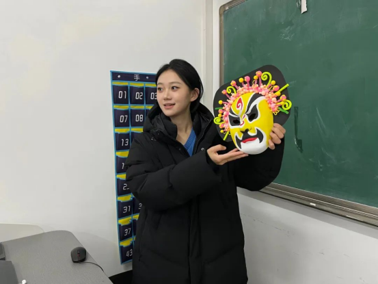 活动现场,学生志愿者现场讲解京剧脸谱的谱式规律与文化内涵。学生们通过揉泥、塑形、勾线、敷彩等工序,创作出融合大刀、烽火、长城等抗战元素的现代脸谱作品。红色主调的《忠魂》、蓝金交织的《砥柱》等作品,既保留戏曲程式化特征,又创新融入革命叙事,赋予非遗艺术新的时代表达。
