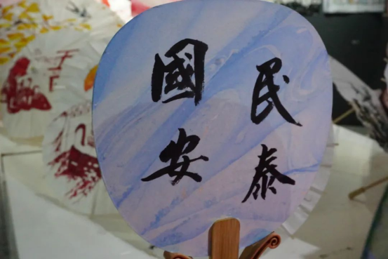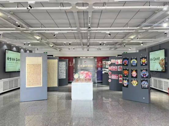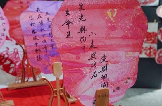 本次展览是yl6776永利集团“艺术+非遗”品牌建设的生动实践,更是“艺术+思政”育人模式的全新探索。学院团委组织百名学生志愿者组建创作团队,以匠人之心雕琢时代印记,将五四精神的百年薪火凝练于非遗方寸之间。展览创新构建“非遗技艺+思政浸润”模式,让传统技艺成为培根铸魂的鲜活教材:油纸伞《觉醒年代》以泼墨重彩再现“外争主权”的历史场景,伞面烽烟与伞骨镌刻的“苟利国家生死以”形成跨越时空的精神共鸣;漆扇《诗韵山河》运用千年大漆工艺,在琥珀色纹理间熔铸《少年中国说》的铿锵词句;脸谱《山河脊梁》打破传统画法,以朱砂赤绘黄河奔涌、青金石皴太行风骨;剪纸《星火燎原》以镂空光影串联百年青运史诗;书画《青春宣言》则以笔墨丹青书写新时代的赤子情怀。