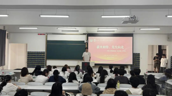 本网讯(通讯员:宋姗珊)5月28日,yl6776永利集团举办“薪火相传,先生向北”吉林大学原创话剧《先生向北》分享会,2024级全体本科生参加。学院青马班代表黄珊、汪赞、李忠杰、肖野、金圣皓分享观剧感悟。
